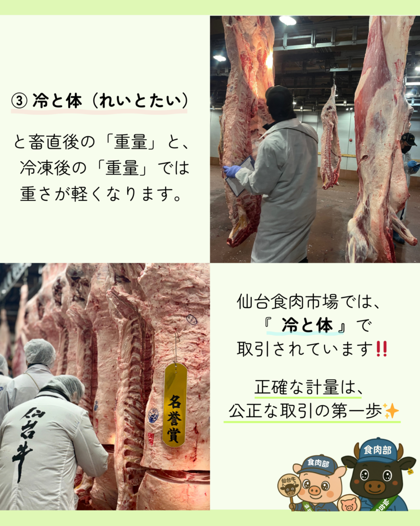 仙台食肉市場では、冷と体で